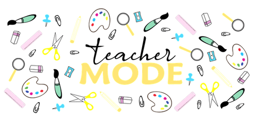A light colored short sleeve top with a teacher mode graphic print.UV Transfers