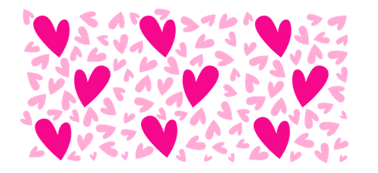 A green cloth with pink and white hearts arranged in no specific order.UV Transfers