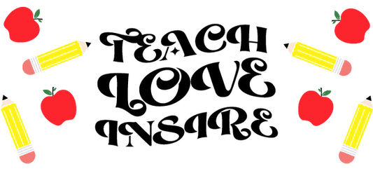 A banner reading “teach Love inspire” with apples and pencils.UV Transfers