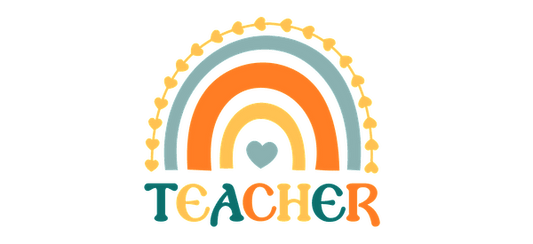 T-shirt with a boho rainbow design and the word Teacher.UV Transfers