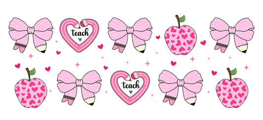 Delicate pink bows adorned with hearts, perfect for a romantic touch.UV Transfers