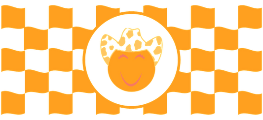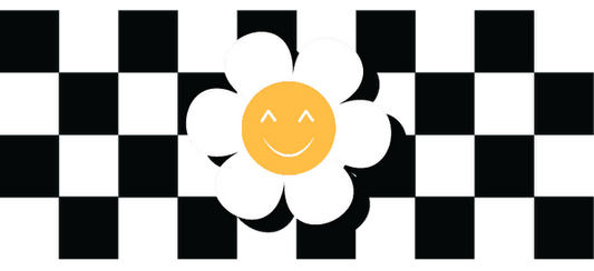 Pink, purple and yellow floral design with a pink and white checkerboard pattern.UV Transfers