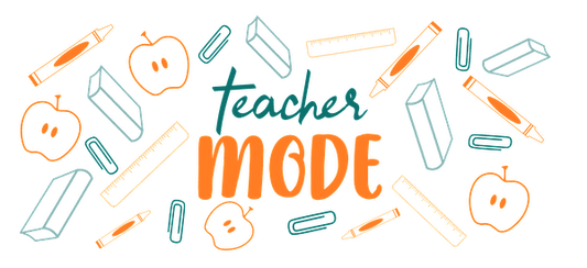 The "Teacher Mode" sign features pencil and apple designs.UV Transfers