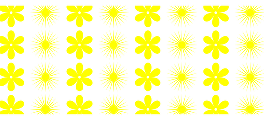 Yellow flowers on a green backdrop with distinctive petals.UV Transfers