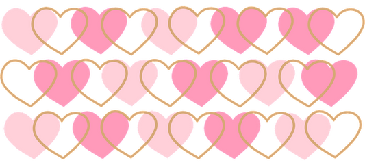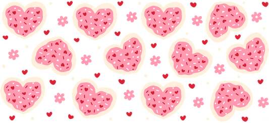 Pink heart patterned decorative wallpaper with flower designs.UV Transfers