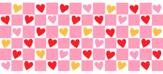 Heart-shaped crayon with a checkered box of pink and white.UV Transfers