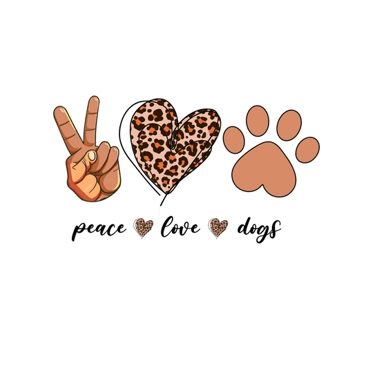 "Peace, Love, Dogs" t-shirt design with a peace sign and paw print.DTF Transfers