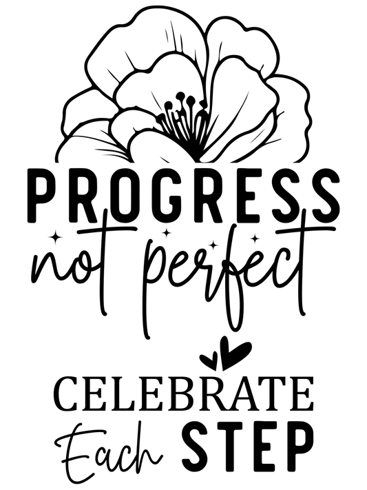 Progress not perfect Mini martini glass leaning on a round glass plate.DTF Transfers