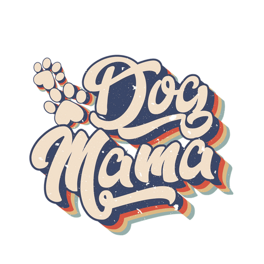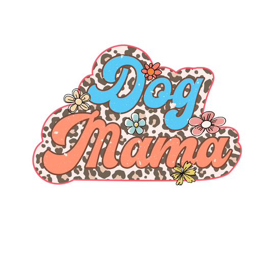 A whimsical "Dog Mama" sign with vibrant colors and floral decorations.DTF Transfers