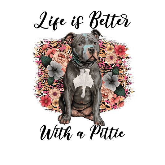 A graphic t-shirt design with a pit bull and floral pattern.DTF Transfers