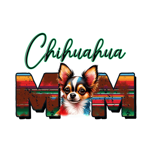 Chihuahua Mom shirt with colorful striped pattern.DTF Transfers