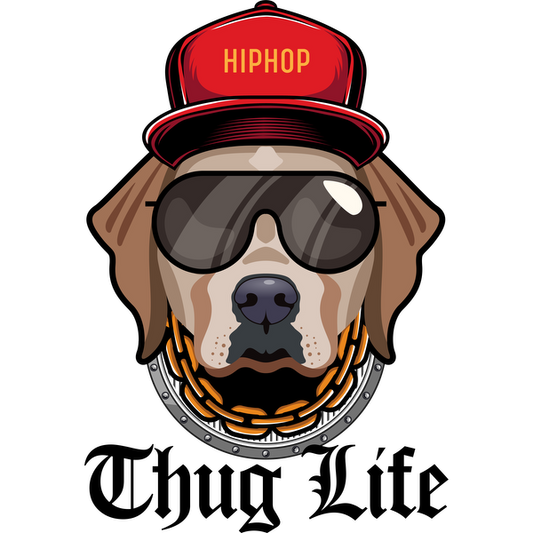Regular price From £0.75 GBPRegular priceUnit price / per£2.39 GBPSale price From £0.75 GBPA cool dog sporting a red "HIPHOP" cap, sunglasses, and a gold chain, exuding a stylish urban vibe. heat press transfers