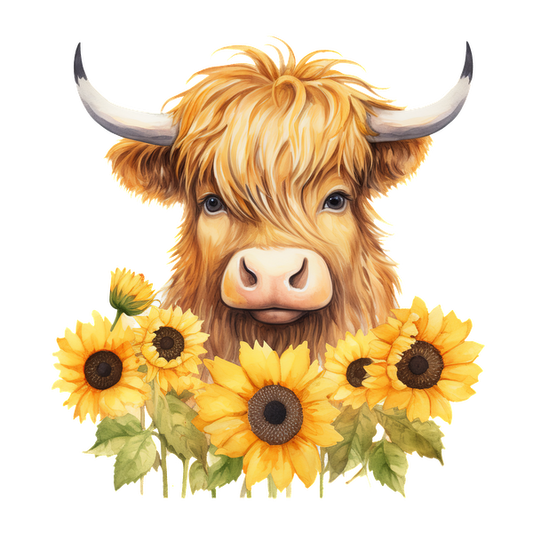 Regular price From £0.75 GBPRegular priceUnit price / per£2.39 GBPSale price From £0.75 GBPA charming Highland cow with long, flowing fur surrounded by vibrant sunflowers, capturing a cheerful and rustic essence. dtf transfers