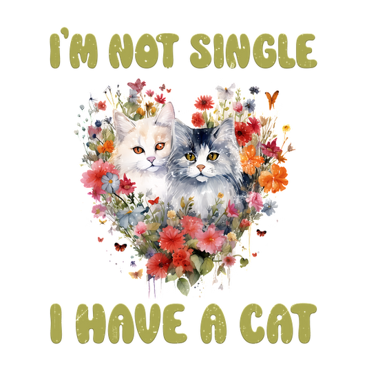 A playful art print featuring two adorable cats surrounded by colorful flowers, proclaiming "I'm not single, I have a cat." dtf prints