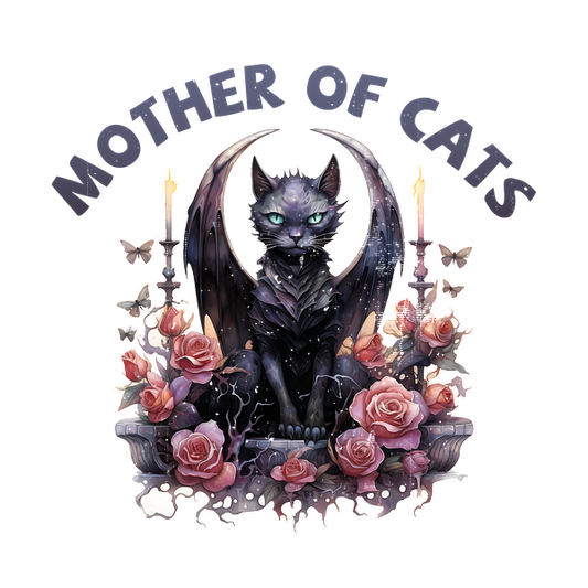 Regular price From £0.75 GBPRegular priceUnit price / per£2.39 GBPSale price From £0.75 GBPA mystical black cat with wings, surrounded by roses and butterflies, proudly proclaims "Mother of Cats" in stylish lettering. dtf transfers