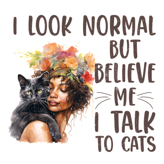 Regular price From £0.75 GBPRegular priceUnit price / per£2.39 GBPSale price From £0.75 GBPA whimsical illustration of a woman with a floral crown holding a black cat, humorously declaring her connection with cats.dtf regular iron