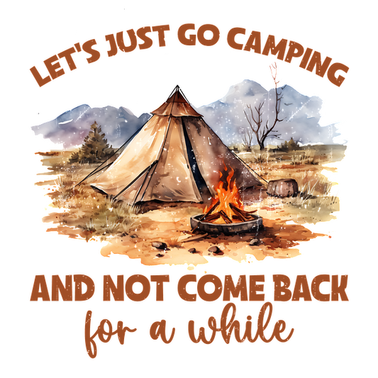 Regular price From £0.75 GBPRegular priceUnit price / per£2.39 GBPSale price From £0.75 GBPA whimsical camping-themed illustration featuring a tent and a campfire, accompanied by a playful quote about escaping into nature.dtf regular iron dtf transfers