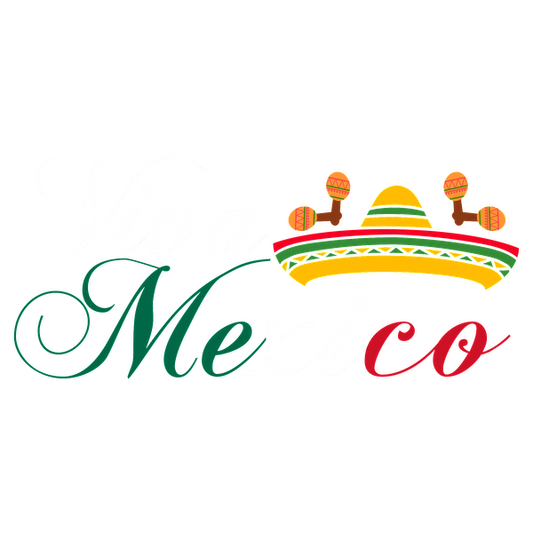 Colorful "Viva Mexico" text accompanied by a traditional sombrero, celebrating Mexican culture with festive and vibrant design elements. dtf transfers