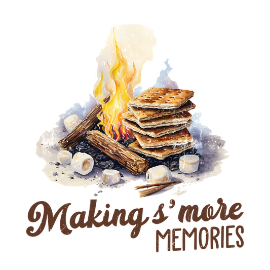 A cozy campfire scene featuring toasted marshmallows and stacked graham crackers, capturing the essence of making s'mores memories.dtf regular iron