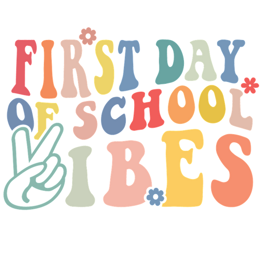 Celebrate the excitement of the new school year with this colorful "First Day of School Vibes" graphic design!DTF Transfers
