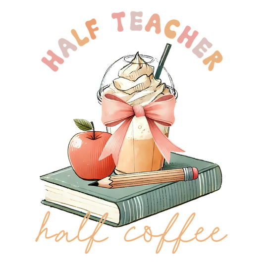 Regular price From £0.75 GBPRegular priceUnit price / per£2.40 GBPSale price From £0.75 GBP"Celebrate teaching with this charming design featuring colorful books, an apple, flowers, and a coffee cup, emphasizing 'Teaching is heart work'!"DTF Transfers