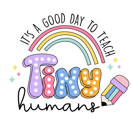 Regular price From £0.75 GBPRegular priceUnit price / per£2.40 GBPSale price From £0.75 GBPA vibrant rainbow design featuring pencils and an apple, celebrating teachers with the phrase "Teachers we do it all."DTF Transfers