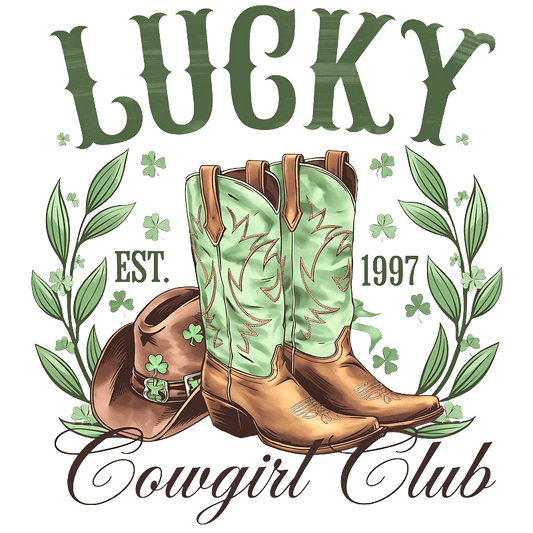 "Green-steeded cowboy boots and hat for a lucky cowgirl club."DTF Transfers