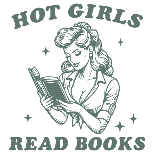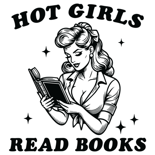 Graphic featuring "Hot Girls Read Books" wordplay and stylized reading woman.DTF Transfers