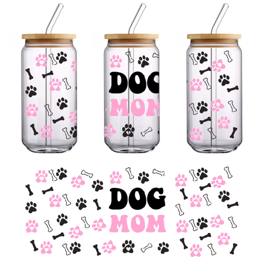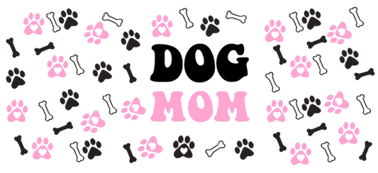 Dog mom logo with colorful hearts and paw prints.UV Transfers