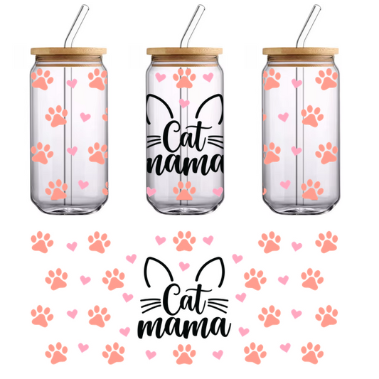 A black blanket with pink hearts and paw prints frames the phrase "Cat Mama".UV Transfers
