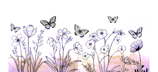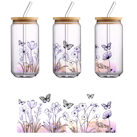 Floral pattern with butterflies and flowers on a black background.UV Transfers