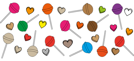 A vibrant assortment of colorful circles and heart shapes, featuring various hues such as red, green, yellow, and blue.UV Transfers dtf prints