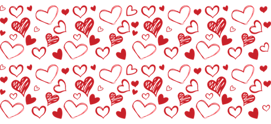 A playful pattern featuring various red hearts, perfect for adding a romantic touch to any design or decoration!UV Transfers dtf transfers