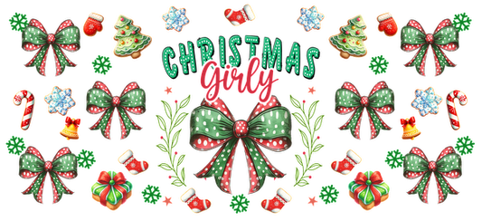 A festive, colorful Christmas design featuring various decorations like bows, candy canes, gifts, and holly, perfect for holiday cheer.UV Transfersdtf regular iron
