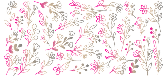 A vibrant floral pattern featuring delicate pink and neutral flowers and foliage, perfect for adding a cheerful touch to designs.UV Transfers heat press transfers