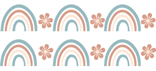 This fabric features rainbows in the style of embroidery.UV Transfers