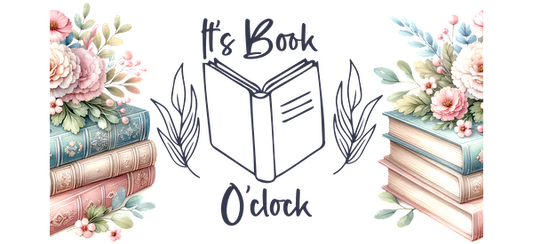 Vintage books with floral designs and the words "Its books clock" are displayed on a black background.UV Transfers