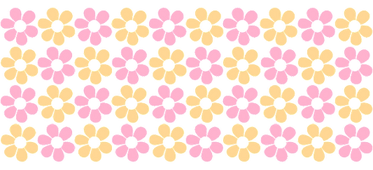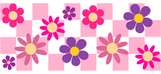 Pink, purple and yellow floral design with a pink and white checkerboard pattern.UV Transfers