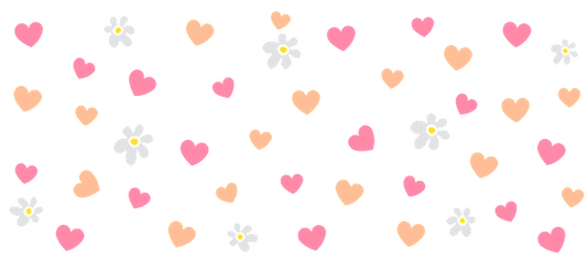 A black and white repeated pattern of hearts and flowers.UV Transfers