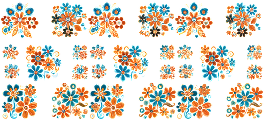 A vibrant collection of floral designs featuring orange and blue flowers, perfect for decorative or crafting projects.UV Transfers dtf prints