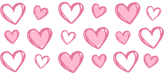 A playful assortment of pink hearts in various sizes and styles, perfect for adding a touch of love to any design.UV Transfersdtf regular iron