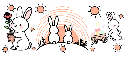 Black background with bunnies, rainbow and vibrant think bubbles and bouquet of flowers.UV Transfers