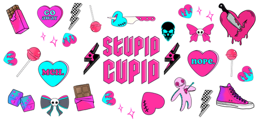 DECALS FEATURES DIZZY EYES, KISSING LIPS, LACE HEART, BRIGHT BOW TIE.UV Transfers