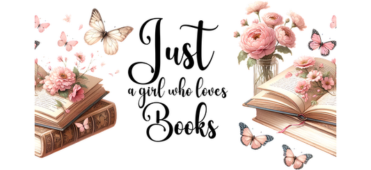 Beautiful flowers and colorful butterflies surround vintage books.UV Transfers