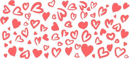 A cheerful pattern of assorted red hearts in various sizes and styles, perfect for expressing love and affection.UV Transfers heat press transfers