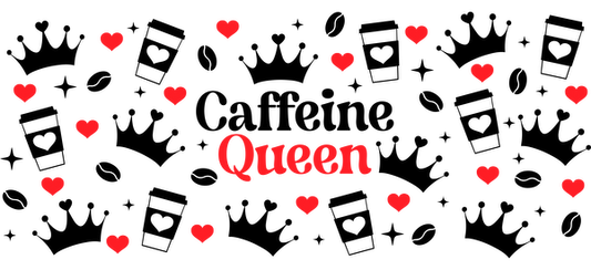 A vibrant design featuring the word "Queen" surrounded by playful red hearts, perfect for celebrating strength and femininity.UV Transfersdtf regular iron
