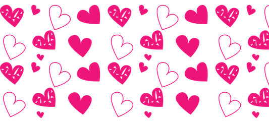 A playful pattern featuring colorful hand-drawn hearts in shades of pink on a contrasting background. Perfect for expressing love!UV Transfersdtf regular iron