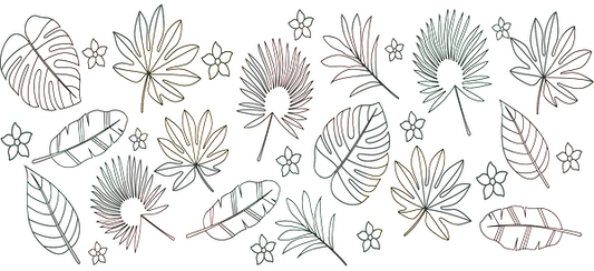 A vibrant collection of abstract leaf and floral patterns in soft colors, perfect for nature-inspired design projects.UV Transfers heat press transfers