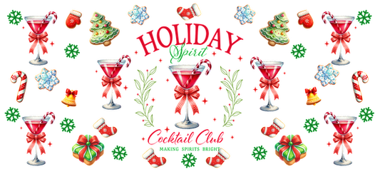 Festive holiday cocktail party design featuring vibrant cocktails, candy canes, Christmas trees, and colorful decorations. Perfect for a cheerful celebration!UV Transfersdtf regular iron
