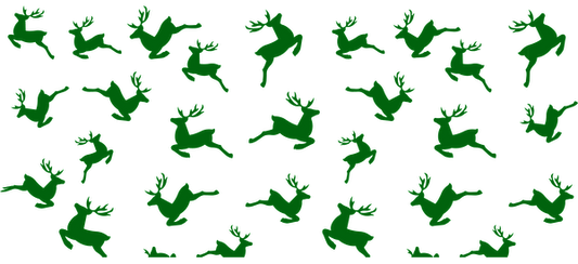 A lively pattern featuring jumping green deer silhouettes against a contrasting background, perfect for festive or nature-themed designs.UV Transfers dtf prints